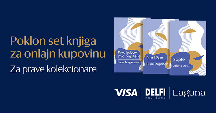 Prilikom kupovine karticom Visa Gold, Visa Platinum ili Visa Infinite na sajtovima laguna.rs i delfi.rs u iznosu od 3.000 dinara ili više poklanjamo unikatni set od 3 knjige iz specijalne edicije svetskih i domaćih klasika.