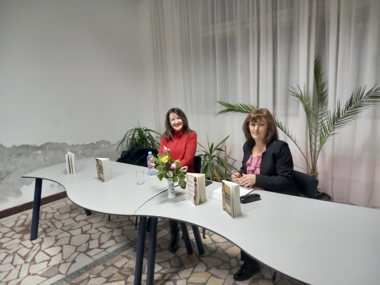 Uz izuzetnu gostoljubivost i brigu o gostu svih zaposlenih i prisutnih, razgovor je tekao spontano. Voditeljka programa Milina Žarčanin, koja je roman „Zmajeva žena“ pročitala, i zbog njegovog kvaliteta i pozvala autorku da gostuje, istakla je šta joj se dopalo, čitala citate o imanju i nemanju i stavila akcenat na dobro koncipiranu podelu romana na boje. U publici je bilo i učesnika popularnog kviza koji su postavljali zanimljiva pitanja i naglasili da ih je roman zainteresovao jer se u njemu opisuje i život van dvorskih zidina u Konstantinopolju i Beogradu.