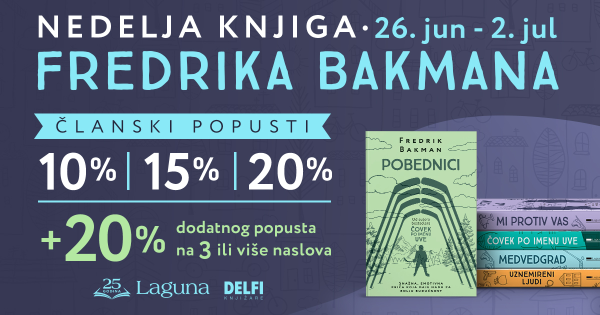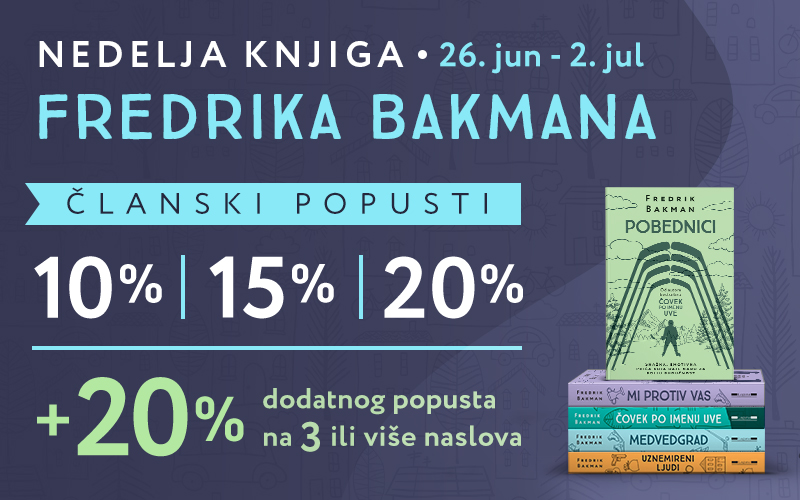 Ako vam nedostaje još neki od romana da biste kompletirali svoju kolekciju, imaćete savršenu priliku da to učinite tokom Nedelje knjiga Fredrika Bakmana, jer ćete uz kupovinu tri ili više naslova, umesto dosadašnjih 10%, moći da ostvarite čak 20% dodatnog popusta.