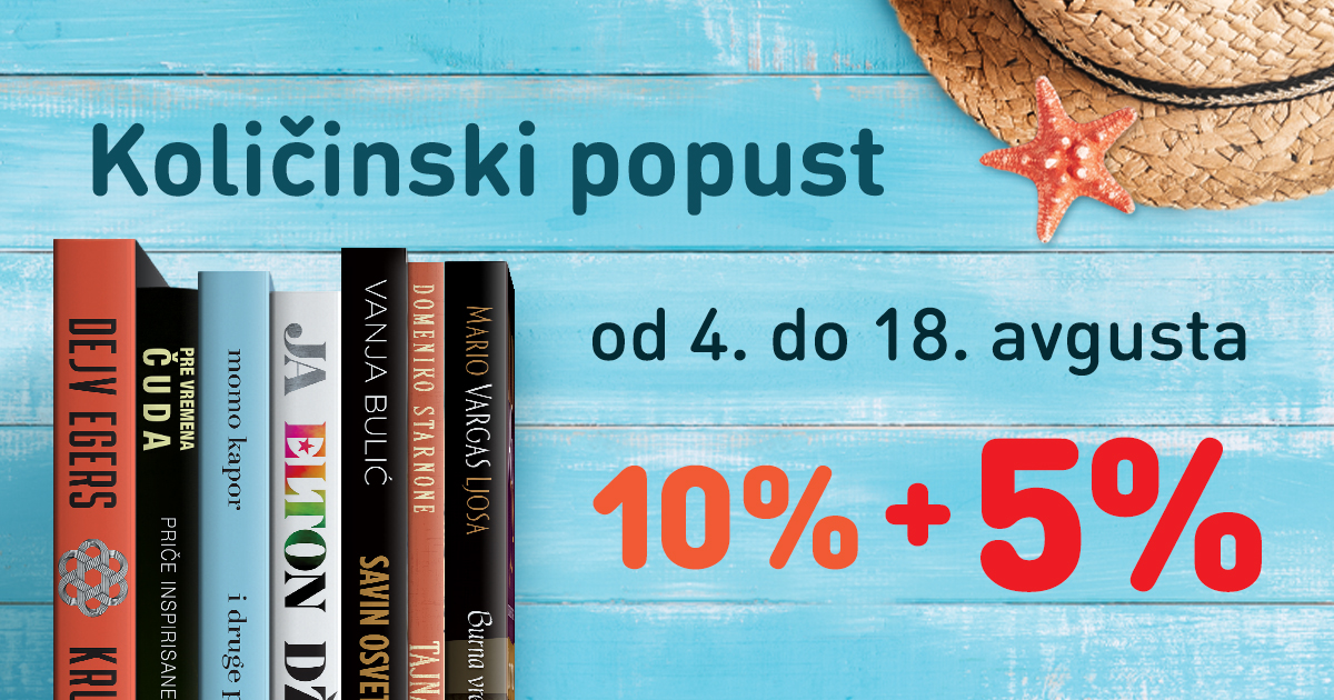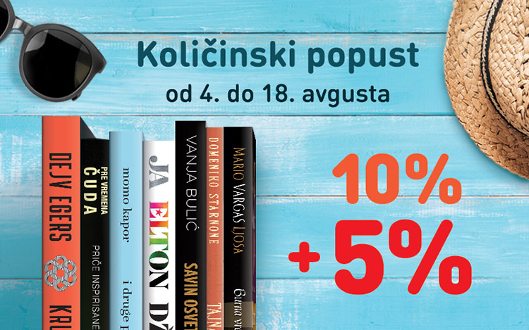 Od 4. do 18. avgusta količinski popust biće povećan na 15%, umesto dosadašnjih 10% na Lagunine naslove u svim knjižarama Delfi i Laguninim klubovima čitalaca u Srbiji, Bosni i Hercegovini i Crnoj Gori.