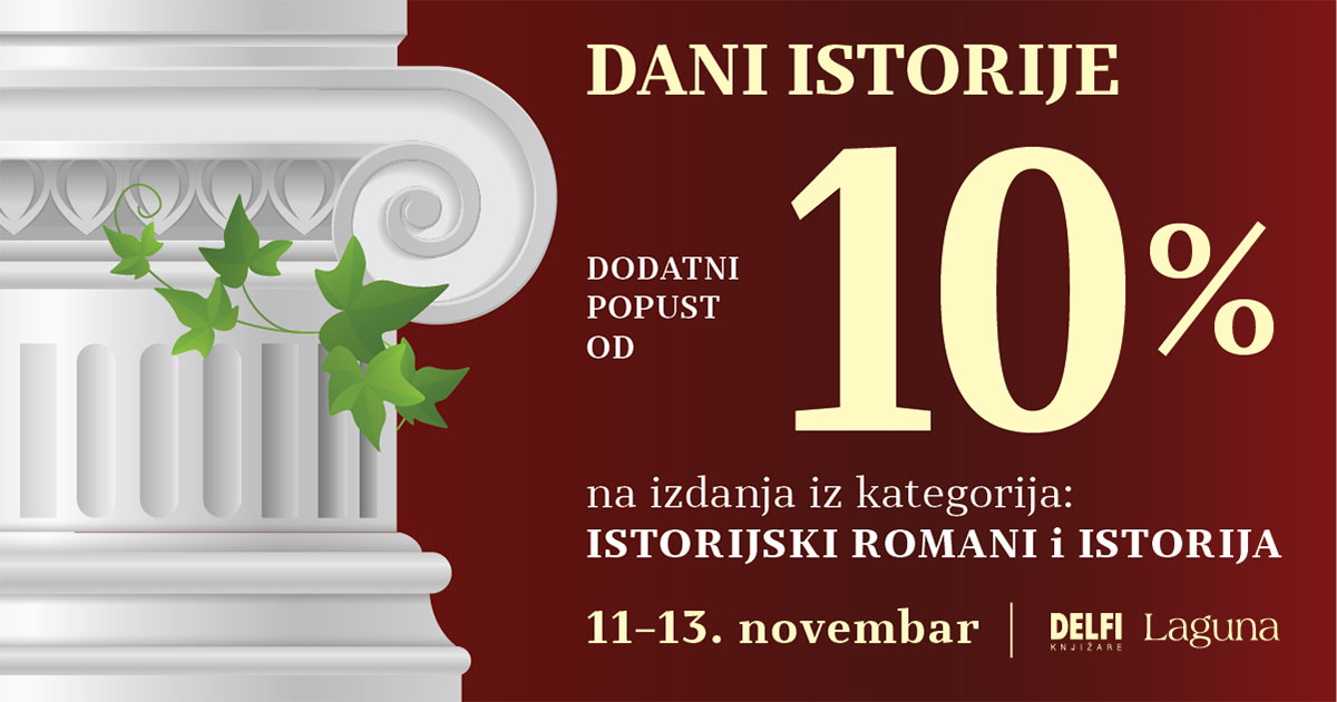 U periodu od 11. do 13. novembra 2022, u svim Delfi knjižarama, kao i na sajtovima laguna.rs i delfi.rs, odobrava se dodatni popust od 10% pored svih važećih članskih i količinskih popusta za sva Lagunina izdanja iz žanrova istorija i istorijski romani.