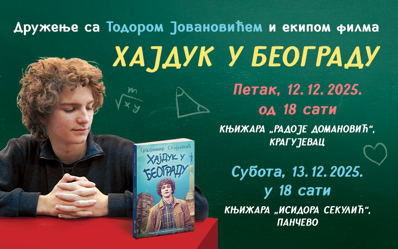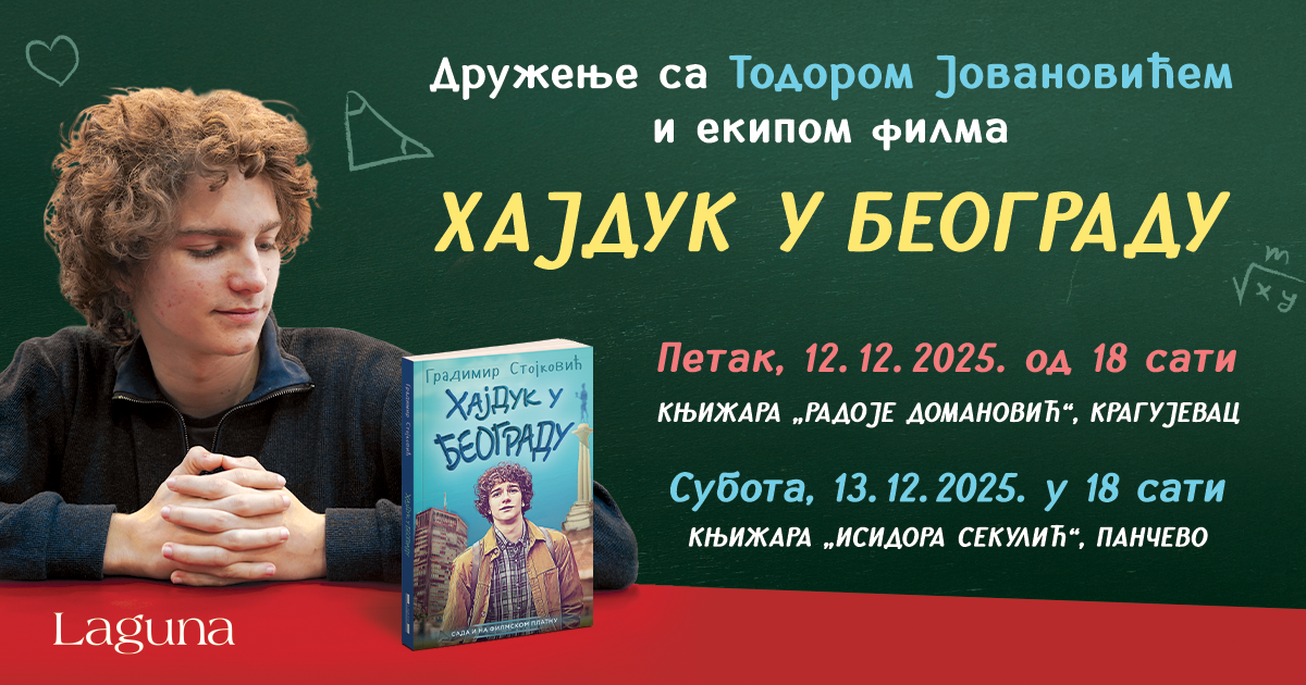U petak 12. decembra od 18 sati, knjižaru Lagunu u svom rodnom Kragujevcu posetiće mladi glumac Todor Jovanović koji tumači glavnog junaka u popularnom filmu „Hajduk u Beogradu“. Film je snimljen prema istoimenom romanu
