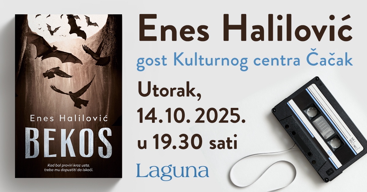 Gost Kulturnog centra Čačak, u utorak 14. oktobra 2025. od 19.30, biće Enes Halilović, jedan od naših najznačajnijih savremenih pisaca. Književno veče, na kome će autor predstaviti svoj novi roman „Bekos“, biće održano u Klubu Kulturnog centra.