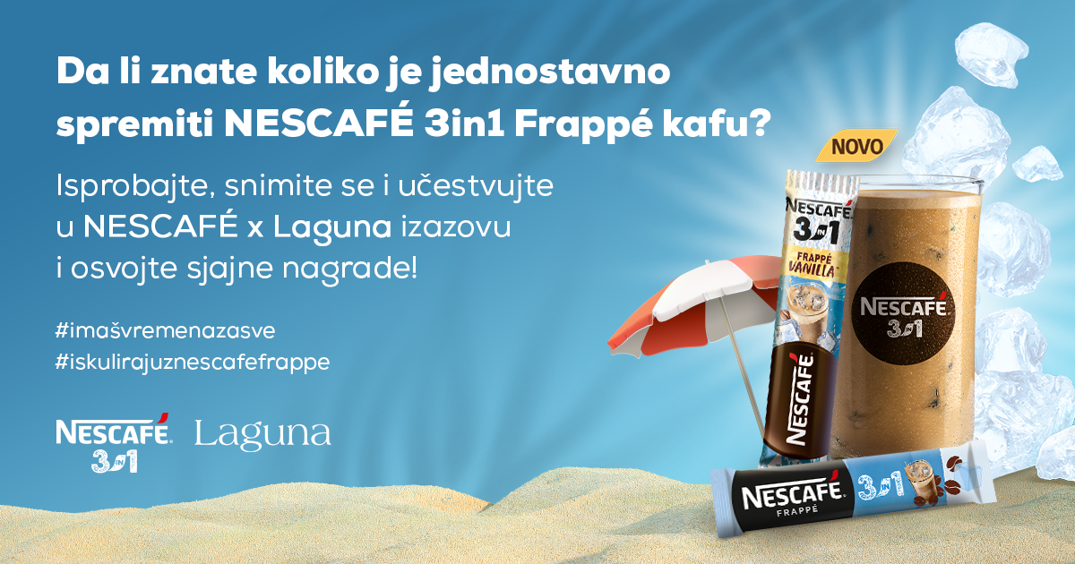 Potrebno je da snimite Instagram reels video kako čitate knjigu i pripremate NESCAFÉ Frappé kafu, a da u svojoj objavi označite Lagunu ili Delfi knjižare, uz hešteg #imašvremenazasve.