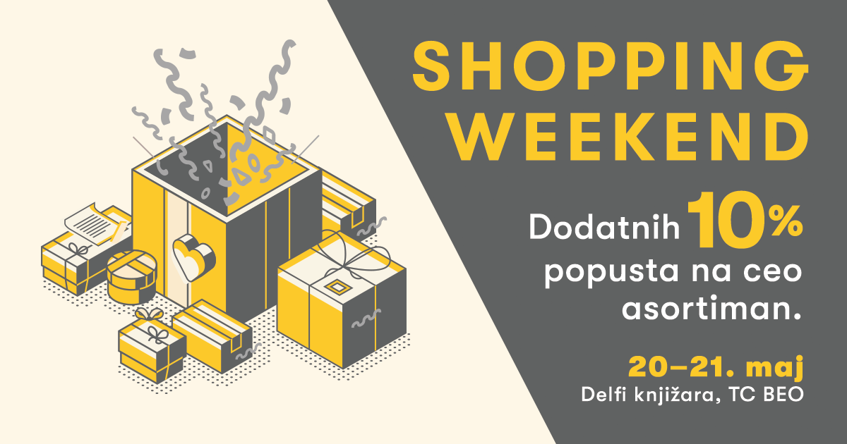 Imamo dobre vesti za sve kupce! Od 20. do 21. maja u Delfi knjižari u BEO Shopping Centru održaće se Shopping Weekend, akcija u kojoj smo omogućili dodatnih 10% popusta na celokupan asortiman. Ovo je prava prilika koju ne treba propustiti da pod specijalnim pogodnostima dođete do najboljih naslova i artikala iz našeg gift programa.