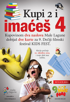 Izdavačka kuća Laguna i Dečiji filmski festival Kids Fest organizuju akciju „Kupi 2 i imaćeš 4“, što podrazumeva da kupovinom dva naslova Male Lagune dobijate dve karte za 9. Dečiji filmski festival.
