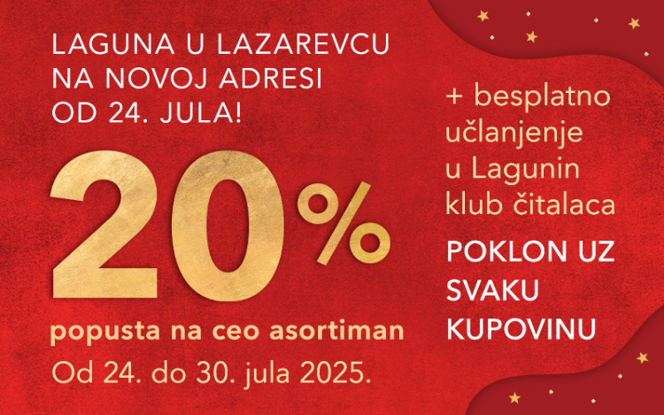 Povodom svečanog otvaranja, pripremamo vam posebnu akciju: 20% popusta na ceo asortiman i besplatno učlanjenje u Lagunin klub čitalaca, kao i poklon iznenađenja za prvih 100 kupaca!