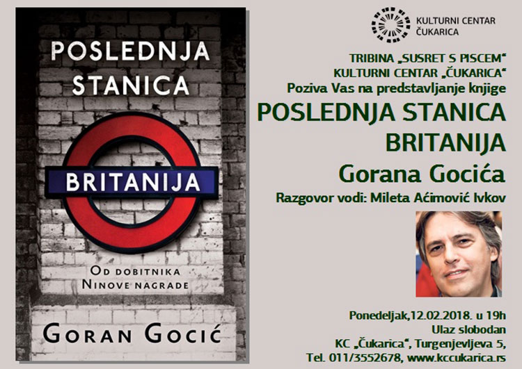 Poslednja stanica Britanija“ Gorana Gocića. Tribinu vodi književni kritičar Mileta Aćimović Ivkov, a ulaz je slobodan.
