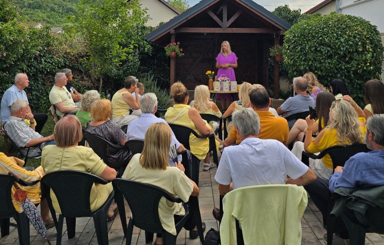 Arhitekti Anđelki (Ani) Mandić ne manjka entuzijazma. Ona u dvorištu porodične kuće u Sedlarima nadomak Valjeva organizuje književne promocije. Autorka Ljiljana Šarac je 16. avgusta po drugi put bila njena gošća (prvi put se sedlarskoj publici predstavila 2021). Slavio se mali jubilej jer je to 15. promocija održana na tom autentičnom idiličnom mestu.