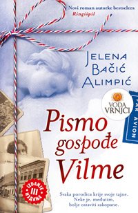 Posle spektakularne promocije knjige „Pismo gospođe Vilme“, Jelene Bačić Alimpić u Vili Jelena, nastavlja se veliko interesovanje čitalaca za ovu knjigu. Rezultati prodaje su nesvakidašnij ali u izdavačkoj kući Laguna svakako očekivani. Ovaj misteriozni i senzualni roman koji otkriva istinu o jednoj nesvakidašnjoj građanskoj porodici u Vojvodini i patnju žene koja je svoju ljubav žrtvovala za dobrobit svoje porodice ušao je u mnoge domove na velika vrata pronalazeći mesto u mnogim srcima vernih Laguninih čitalaca kao i mnogobrojnih poštovalaca virtuoznog pisanja Jelene Bačić Alimpić i njenog prvenca, knjige „Ringišpil“.