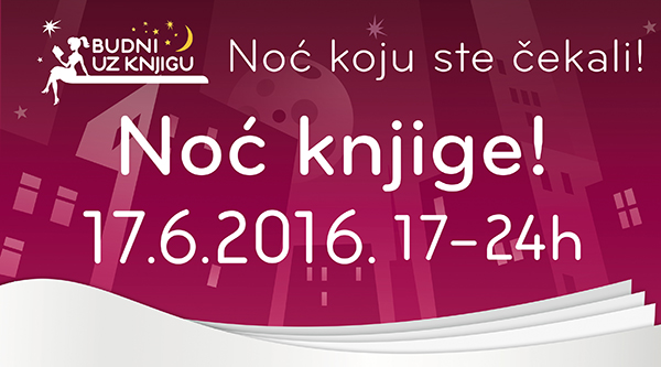Četrnaesta regionalna Noć knjige u organizaciji Lagune i knjižarskog lanca Delfi i pod pokroviteljstvom Eurobank Srbija biće održana u petak, 17. juna 2016. godine od 17 do 24 časa.