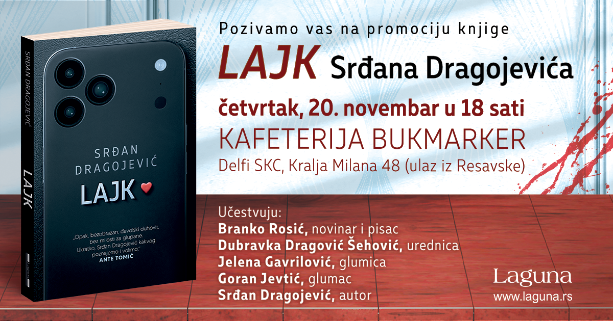 Srđana Dragojevića biće održana u četvrtak 20. novembra u 18 sati u kafeteriji Bukmarker knjižare Delfi SKC.