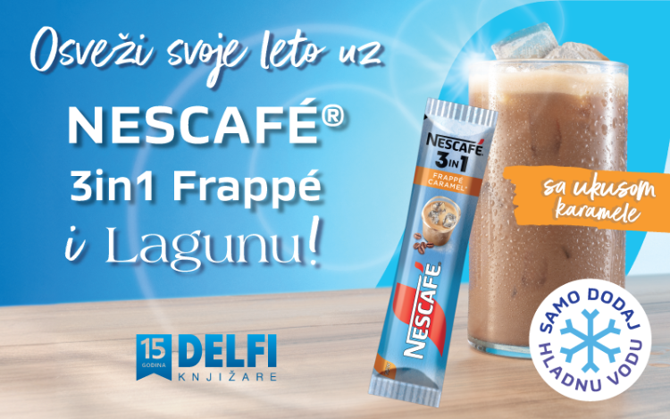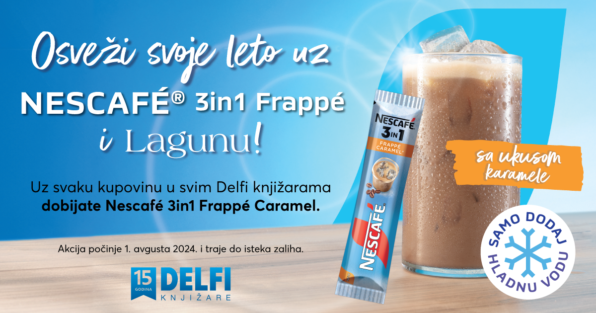 Od 1. avgusta 2024. godine, pa sve do isteka zaliha, uz svaku kupovinu u svim Delfi knjižarama, dobijate kesicu Nescafé Frappe Caramel kafe.