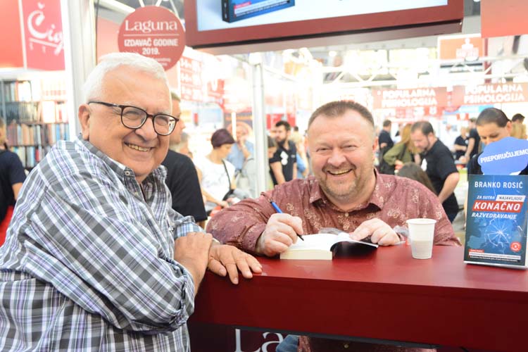 Branko Rosić se sa svojim čitaocima družio na Laguninom štandu od 15 sati i 30 minuta. „Ja se na Sajmu knjiga uvek opustim, čak i u minutima i satima kad ne kupujem ništa, prija mi da sretnem ljude. Mogu da ih sretnem i na drugim mestima ali ovde je nekako posebna atmosfera. Mislim da je Sajam knjiga potreban gradu.“