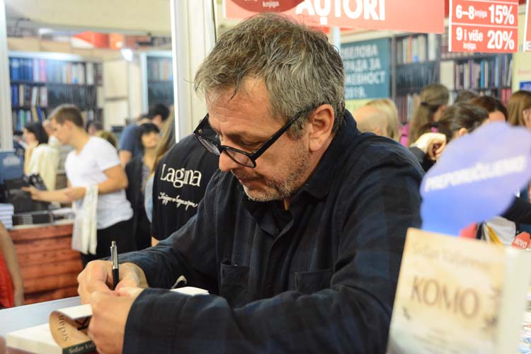 Od 15 sati na štandu Lagune bio je Dejan Stojiljković, koji je potpisivao jubilarno, prošireno izdanje knjige „Konstantinovo raskršće“. „Sajam se menja, to je definitivno, kao što se svi mi menjamo. Deset godina je prošlo kako sam izdao prvu knjigu za Lagunu i naravno te 2009. štand je bio manji, a sada smo izdavači godine. Vrlo sam srećan zbog toga. Krug prijatelja i kolega se, naravno, širi. U vreme kad sam ja počinjao nije bilo toliko domaćih pisaca u Laguni. Sad su svi značajni pisci ovde kod nas i sa mnogima sam prijatelj. I baš volim da dođem da se družim i popričam sa kolegama, da čujemo šta ko sprema. Ja kao pasionirani čitalac dođem ovde da se vratim u Niš sa kamarom knjiga. Prvo kupujem stručnu literaturu, a onda ide gušt – stripovi i beletristika.“