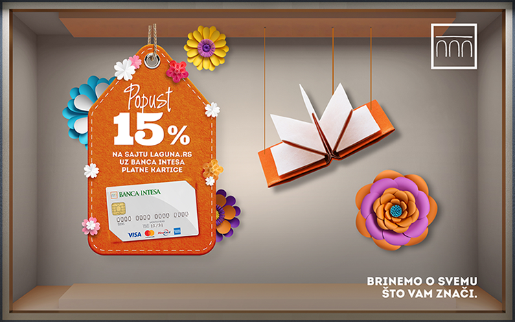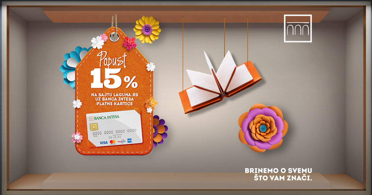 Ovoga puta vlasnici platnih kartica Banca Intesa ostvaruju popust od 15% za kupovinu knjiga na sajtu laguna.rs do 30. novembra 2021. godine.