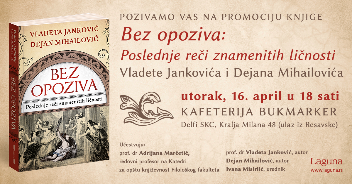 Dejana Mihailovića, obuhvatan i raznovrstan hronološki prikaz oproštajnih reči znamenitih ličnosti.