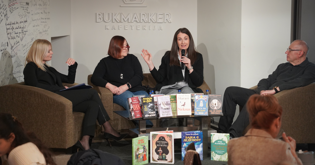Tim povodom na današnjoj konferenciji za medije u knjižari Delfi SKC govorili su književnica Mirjana Đurđević, urednik u Laguni