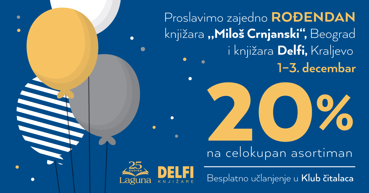 Tokom predstojećeg vikenda, od 1. do 3. decembra, proslavićemo rođendane Delfi knjižara „Miloš Crnjanski“ u Beogradu i „Branko Ćopić“ u Kraljevu.