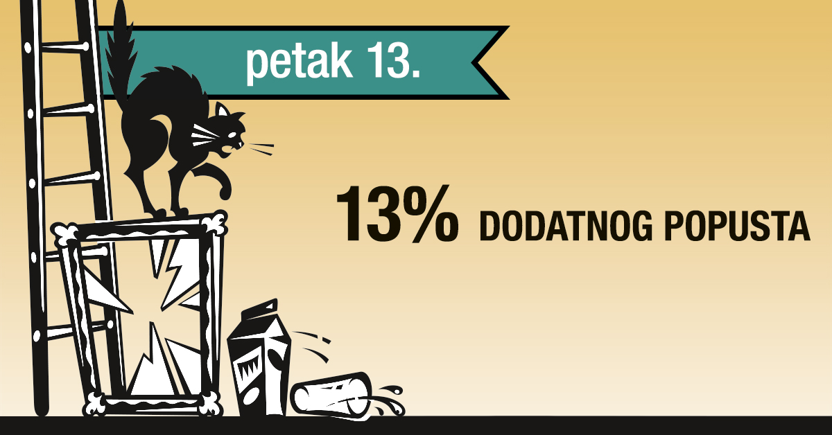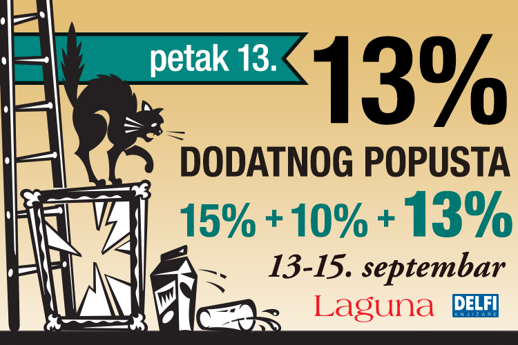 U petak, 13. septembra na sajtovima www.delfi.rs i www.laguna.rs, uz stalni članski popust i količinski od 10%, svi kupci mogu da iskoriste dodatni popust od 13% na Lagunine naslove iz žanrova: triler, horor i fantastika. Spisak naslova možete videti ovde.