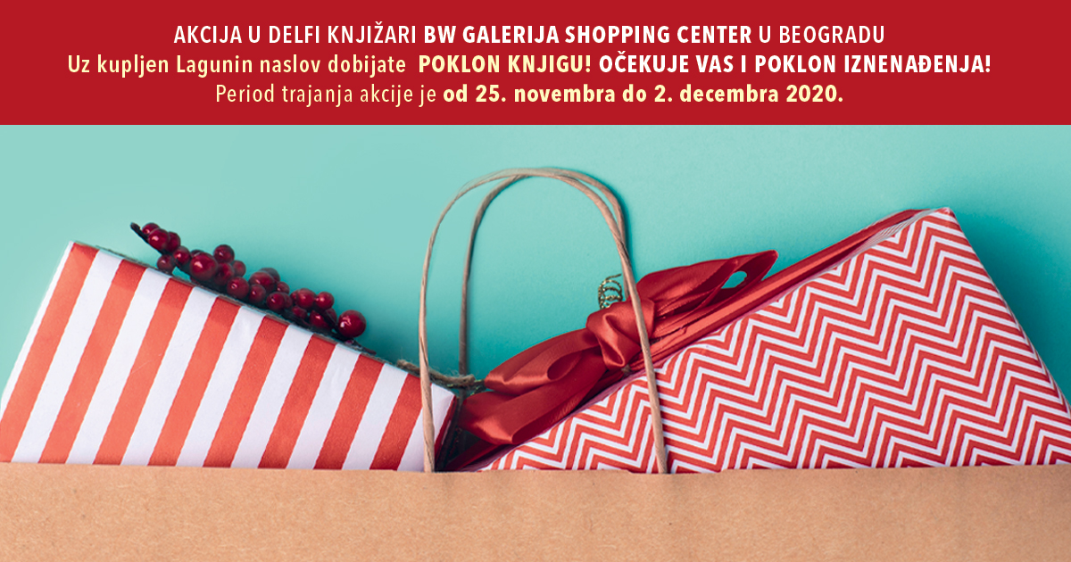 U periodu od 25. novembra do 2. decembra uz svaku kupovinu koja uključuje barem jedno Lagunino izdanje dobijate knjigu na poklon! Možete da birate jedan od čak trideset kvalitetnih naslova, među kojima su i „Deseti decembar“ Džordža Sondersa, „Život i vremena Majkla K“ Dž. M. Kucija, „Frankenštajn u Bagdadu“ Ahmeda Sadavija, ili fenomenalne knjige za decu „Uništi ovu knjigu u ime nauke“ i „Uništi ovu knjigu u ime umetnosti“.