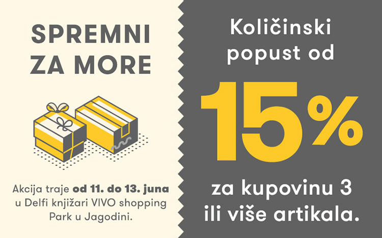Na radost svih ljubitelja lepog, imamo dobru vest. Za kupovinu tri ili više artikala tokom šoping vikenda u VIVO shopping PARK-u u Jagodini, u Delfi knjižari će se obračunavati količinski popust od 15% umesto dosadašnjih 10%.