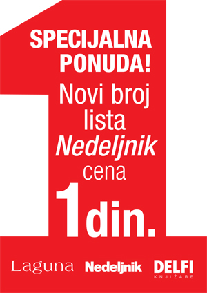 Od petka, 26. aprila, u svim knjižarama Delfi širom Srbije uz kupovinu bilo koje Lagunine knjige, knjige drugih izdavača ili proizvoda iz gift programa u vrednosti preko 100 dinara, bićete u mogućnosti da iskoristite specijalnu ponudu i obezbedite sebi najnoviji primerak lista Nedeljnik za samo 1 dinar.