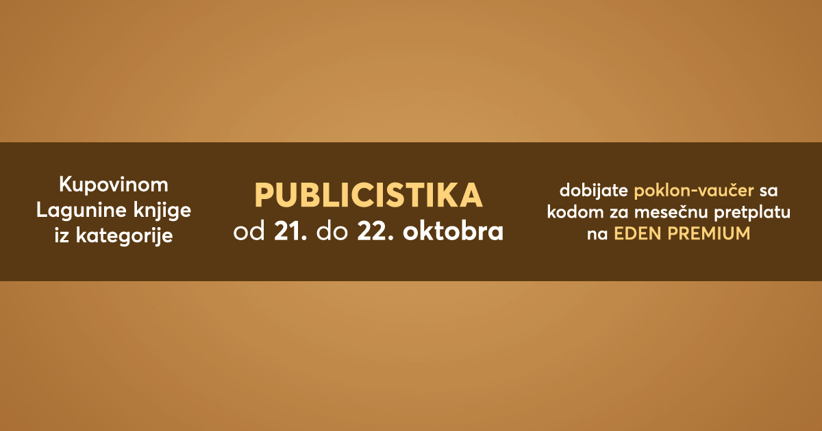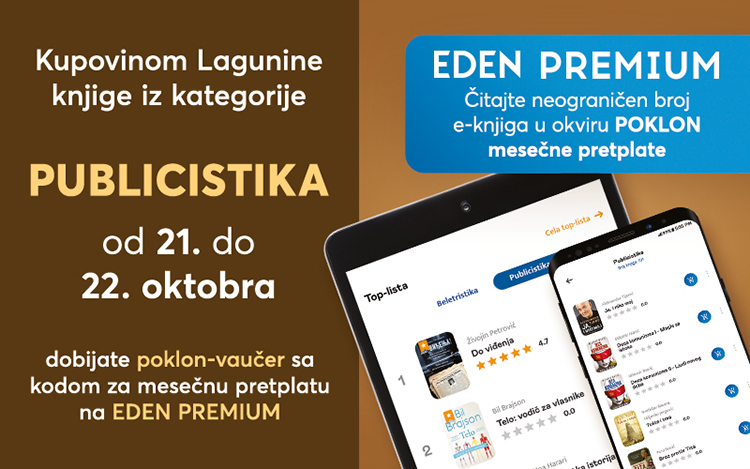 Tokom Sajamskih dana, sve do 31. oktobra, uz svaku kupovinu Laguninih izdanja određenog žanra, dobijate na poklon vaučer za besplatnu mesečnu pretplatu na EDEN Books aplikaciji za čitanje elektronskih knjiga.