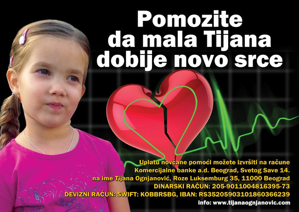 Da bi dobila tešku bitku, koju vodi već skoro pet godina, Tijani je za transplantaciju srca u Beču potrebno prikupiti oko 200.000 evra, koliko iznose okvirni troškovi lečenja. Troškovi transplantacije srca iznose 120.000 evra, a jednog bolničkog dana 2.400 evra. Novac je potrebno sakupiti do kraja godine, jer je to jedini način da se spase život maloj Tijani.