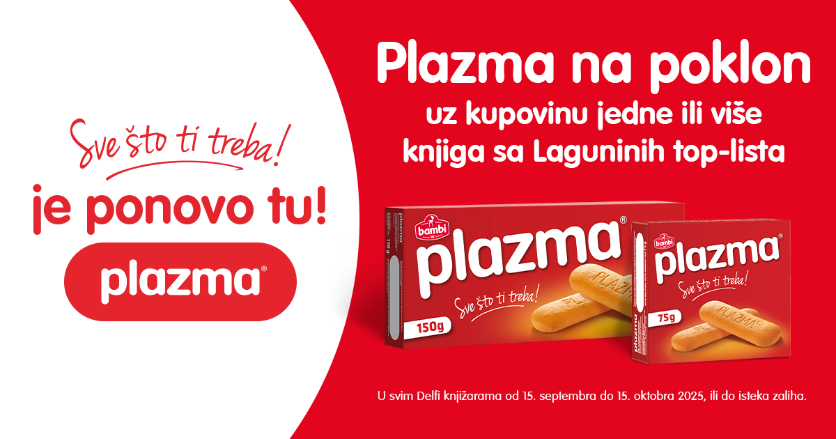 Od 15. septembra 2025. u svim Delfi knjižarama, uz kupovinu jedne ili više knjiga sa Lagunine top-liste beletristike, publicistike ili knjiga za decu, na poklon dobijate Plazmu, omiljenu generacijama.