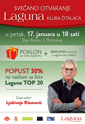 Čast da se zvanično najavi početak rada ove knjižare pripala je Laguninom piscu Ljubivoju Ršumoviću koji će tom prilikom potpisivati svoje knjige.