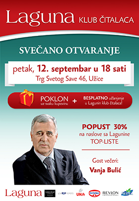 Čast da se zvanično najavi početak rada ove knjižare pripala je Laguninom piscu Vanji Buliću koji će tom prilikom potpisivati svoje knjige.