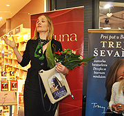 Raspoložena za druženje, Trejsi Ševalije večeras je do kasnih večernjih sati potpisivala svoje knjige.