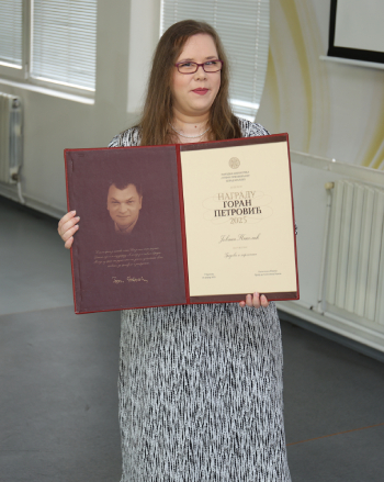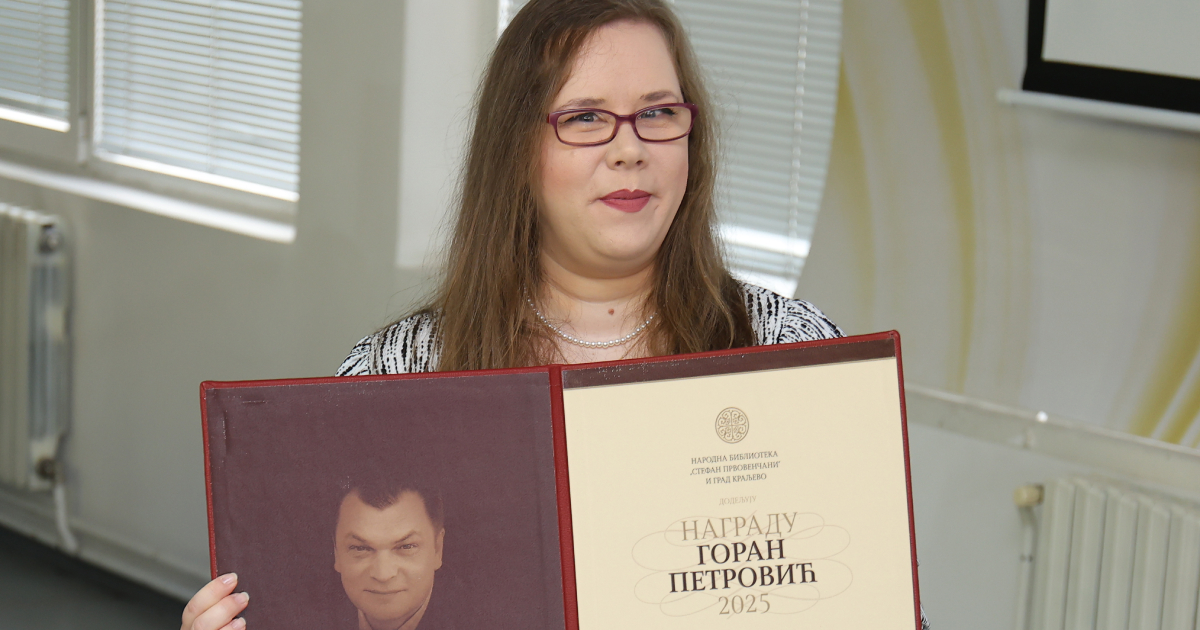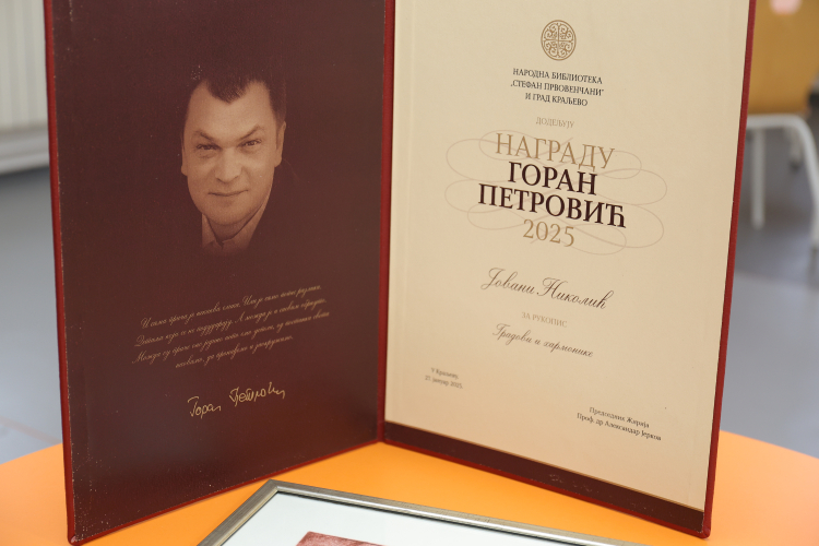 Na godišnjicu smrti našeg proslavljenog i rano preminulog pisca Gorana Petrovića, 28. januara je u njegovom rodnom Kraljevu uručena novoustanovljena književna nagrada koja nosi njegovo ime. Nagrada „Goran Petrović“, koju je inicirala Narodna biblioteka „Stefan Prvovenčani“ iz Kraljeva, pripala je Jovani Nikolić, inače naučnoj saradnici na Filozofskom fakultetu u Beogradu, za zbirku priča „Gradovi i harmonike“.