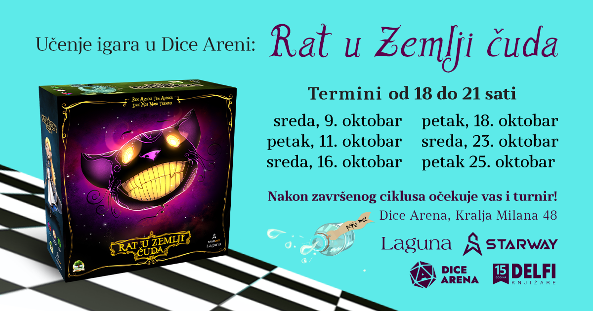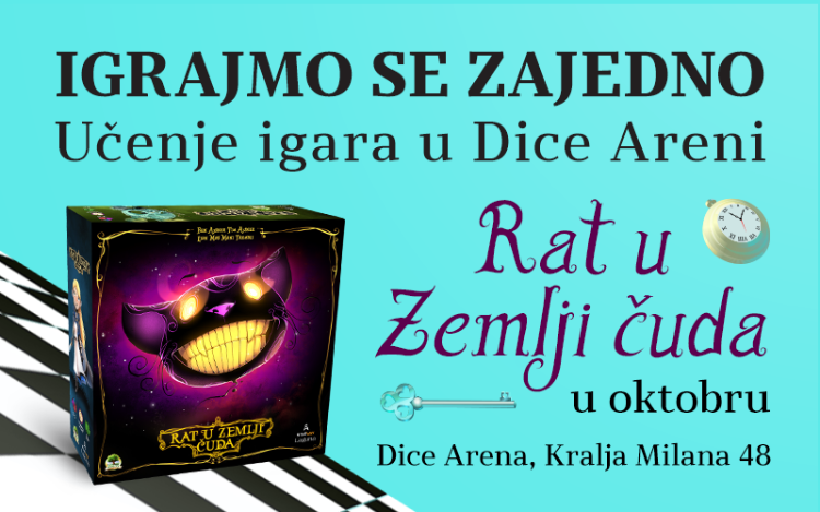 Od srede 9. oktobra 2024. počinjemo sa novim ciklusom dobro poznatog druženja – Učenje igara u Dice Areni. Ovoga puta bavimo se igrom „Rat u Zemlji čuda“. Igrače očekuje čak šest termina za savladavanje pravila igre, i to počev od srede 9. oktobra. Naredni termini su 11, 16, 18, 23, i 25. oktobar.