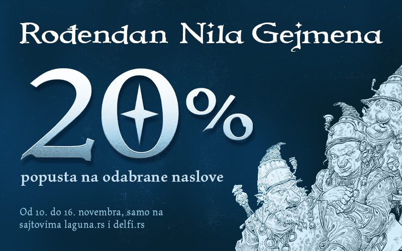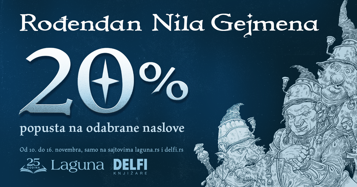 Nil Gejmen, jedan od najuspešnijih pisaca današnjice, 10. novembra proslaviće 63. rođendan. Želimo da vas obradujemo akcijom posvećenom ovom autoru tako što ćete od 10. do 16. novembra, samo na sajtovima laguna.rs i delfi.rs, moći da nabavite odabrane naslove na specijalnom popustu od 20%.