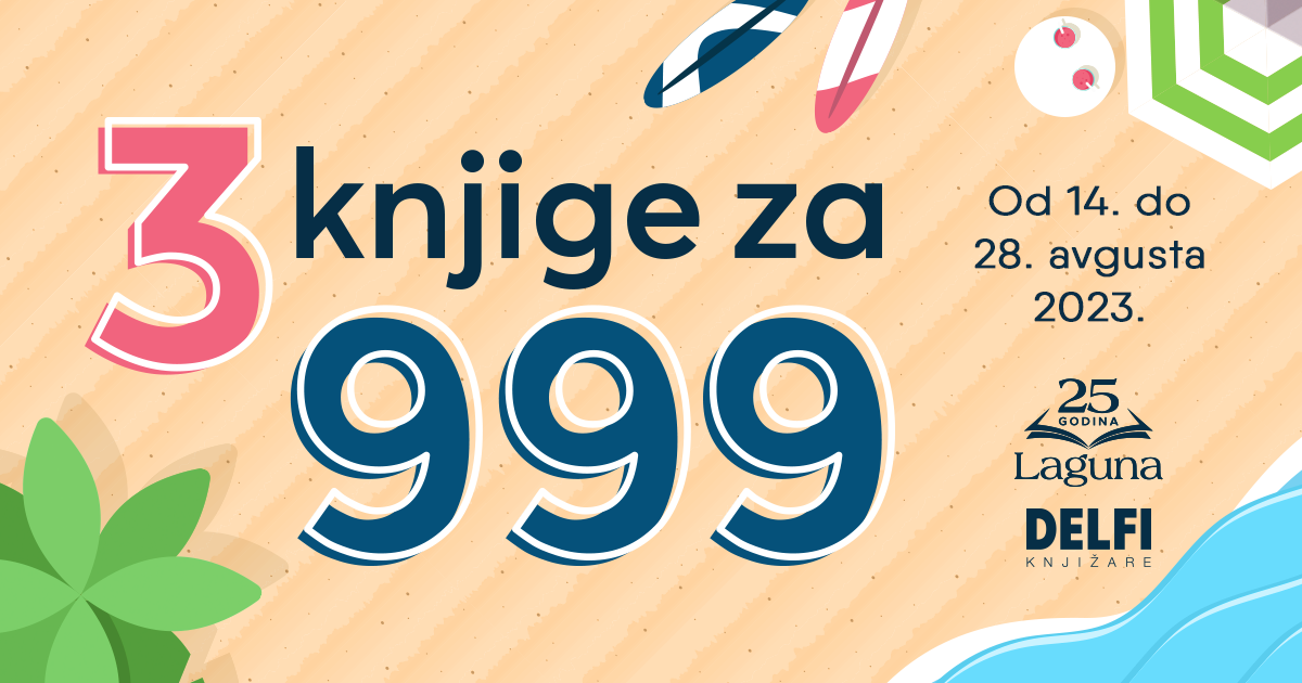 Od 14. do 28. avgusta očekuje vas sjajan izbor knjiga na akciji „3 za 999“, koja važi u svim Delfi knjižarama, kao i na sajtovima laguna.rs i delfi.rs.