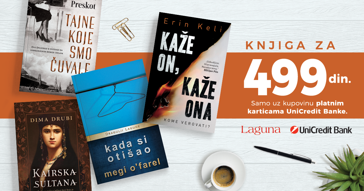 Odlična vest za sve ljubitelje dobrih knjiga jeste da UniCredit banka i izdavačka kuća Laguna nastavljaju sa specijalnom akcijom koja će trajati od 5. jula do 4. avgusta 2021. godine.