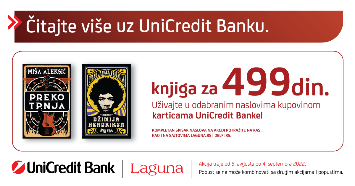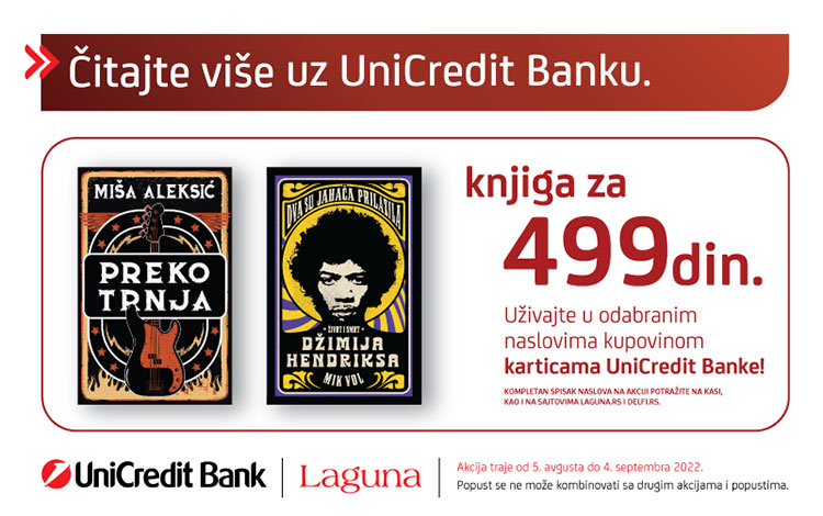 UniCredit banka i izdavačka kuća Laguna nastavljaju sa specijalnom akcijom koja će trajati od 5. avgusta do 4. septembra 2022. godine.