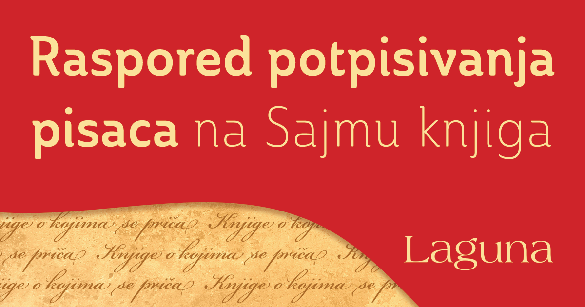 Ovo je kompletan raspored potpisivanja pisaca na štandu Lagune u Hali 1:
