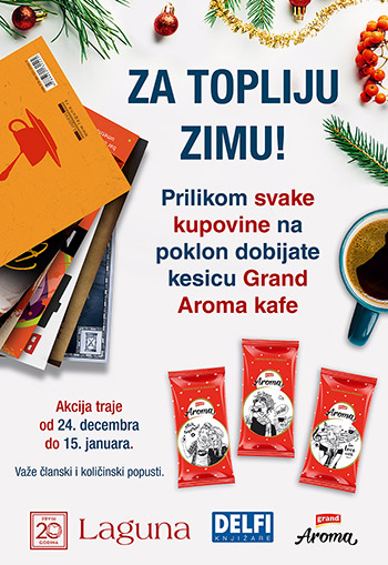 Od ponedeljka 24. decembra 2018. do utorka 15. januara 2019. prilikom svake kupovine u knjižarama Delfi i Laguninim klubovima čitalaca na poklon dobijate kesicu Grand Aroma kafe.