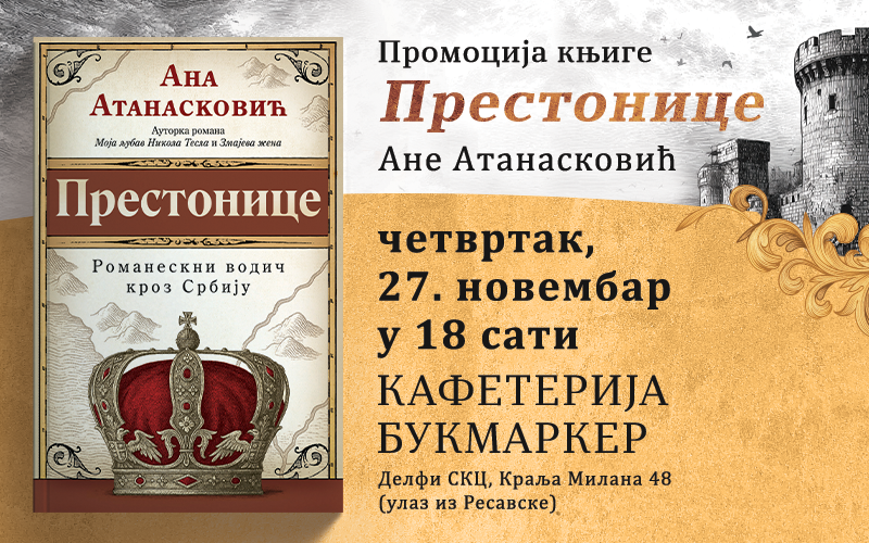 Beogradska promocija knjige „Prestonice“ Ane Atanasković 27. novembra u knjižari Delfi SKC