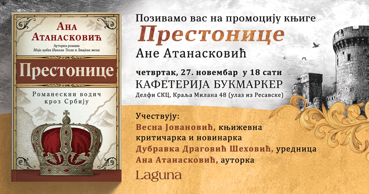 Laguna - Bukmarker - Beogradska promocija knjige „Prestonice“ Ane Atanasković 27. novembra u knjižari Delfi SKC - Knjige o kojima se priča
