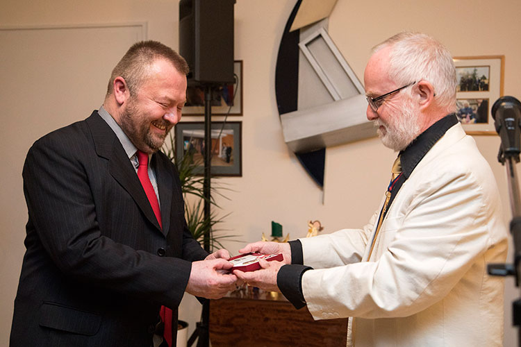 Na svečanosti koja je bila, kako je to ambasador Denis Kif opisao, „na granici između formalne ceremonije i kulturnog performansa“, uz prisustvo krema srpske umetnosti i kulture, Rosiću je uručena medalja direktno iz kovčežića sa britanskom zastavom jer je „hodajuća personifikacija moderne britanske kulture u Srbiji, i obrnuto“, dodao je ambasador. „Celokupna njegova estetika i profesionalno stvaralaštvo, od prvih rifova 'Urbane gerile' i komentara u časopisu 'NME' do učešća na tribinama i objavljivanja romana je, makar indirektno, most između Britanije i Srbije. Branko nas podseća na zajedničke vrednosti i koliko toga obični ljudi iz Britanije i Srbije imaju zajedničkog“, poručio je gospodin Kif.