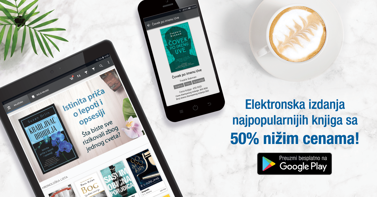 ovde), lako se registruj i u samo nekoliko poteza, bez obzira u kojoj se državi nalaziš, kupi najpopularnije knjige objavljene na srpskom jeziku. I to po 50% nižim cenama u odnosu na štampane! Kada kupiš knjigu, ona trajno ostaje u tvom vlasništvu i možeš je čitati na svakom mestu, u svako doba dana, sa najviše tri različita android uređaja.