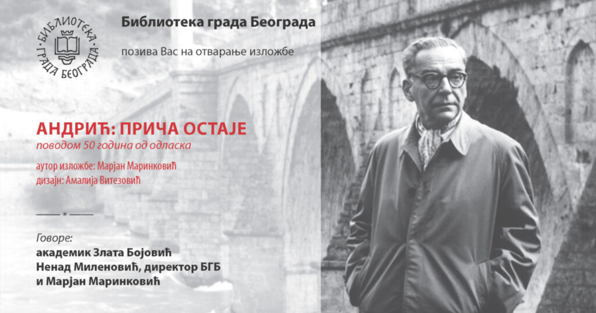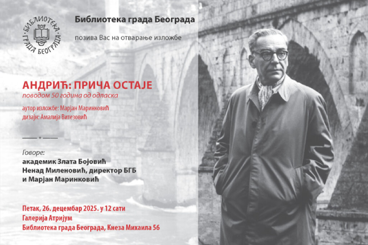 Izložba „Andrić: priča ostaje“ otvorena je 26. decembra u 12 sati u Galeriji Atrijum Biblioteke grada Beograda.