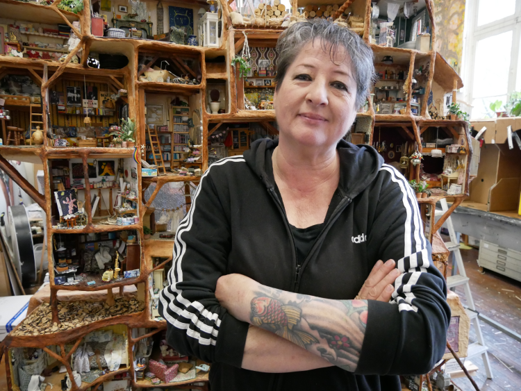 Karina:Kuća mišića je minijaturni svet koji sam osmislila kao serijal knjiga za decu. U potpunosti je napravljen od kartonskih kutija i recikliranog materijala. Godinama sam ga gradila, a sastoji se od stotine prostorija – počevši od stanova pa sve do prodavnica, fabrika, pa čak i pozorišta, luke, muzeja i cirkusa. Kuća mišića je utočište u kome žive raznoliki i jedinstveni likovi.