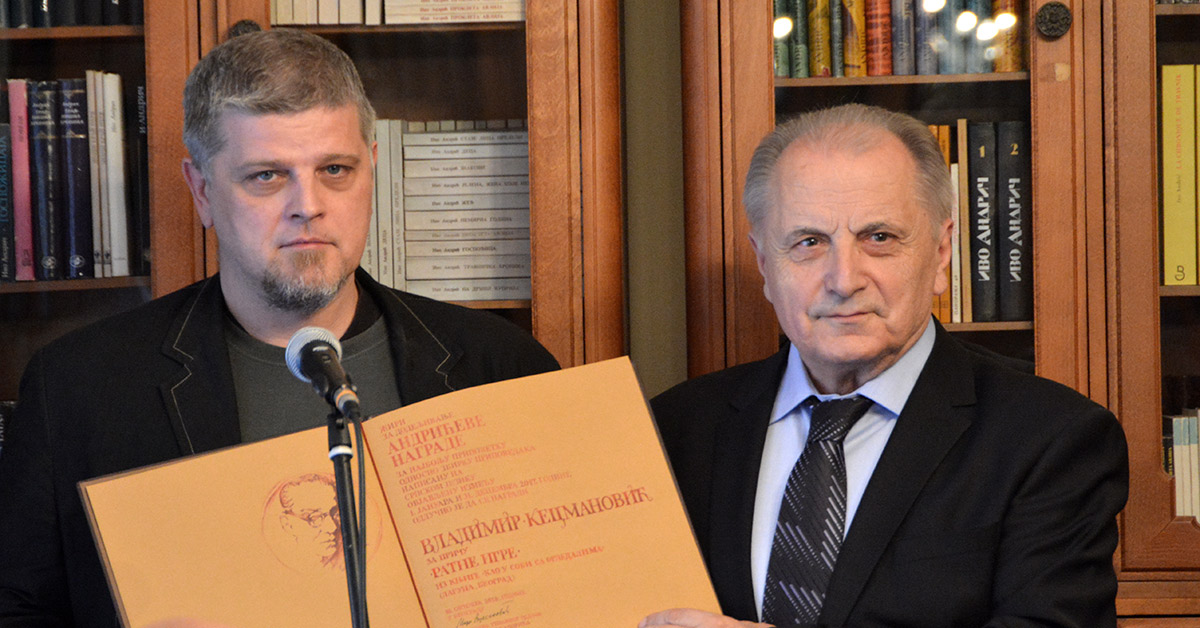 Prestižna književna nagrada Andrićeve zadužbine za najbolje napisanu priču na srpskom jeziku protekle godine danas je svečano uručena Vladimiru Kecmanoviću u prostorijama Zadužbine. Nagradu je dobio za priču „Ratne igre“ koja je objavljena u zbirci „Kao u sobi sa ogledalima“ u izdanju Lagune.
