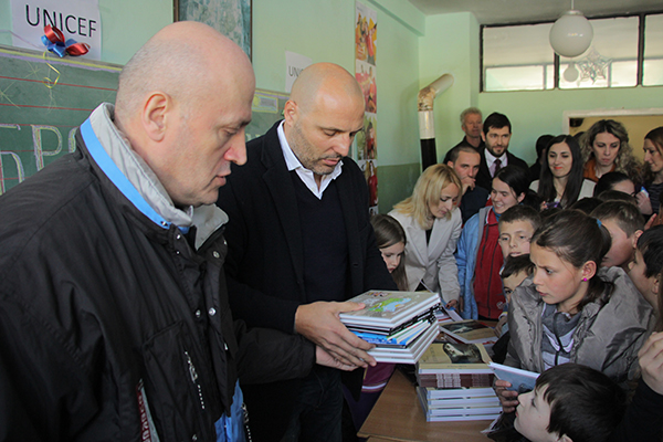Ambasador Unicefa Aleksandar Saša Đorđević posetio je školu i pored Unicefovih proizvoda đake je obradovao knjigama koje je obezbedila Laguna i time obogatila školsku biblioteku.
