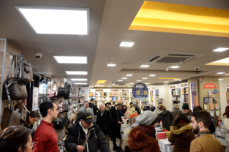 Možda su ulice bile puste, ali knjižare Delfi su bile pune, kao i Lagunini klubovi čitalaca. Dobra atmosfera u knjižarama vladala je celo veče, stajanje u redu nikome nije smetalo, a sve su upotpunili sjajni pokloni naših prijatelja manifestacije.